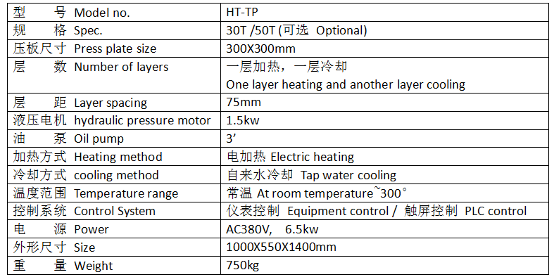 適用橡塑料原料、顏料、油默、化工原料等。將各原料放于模內(nèi),夾于本機(jī)電熱平板間,加以合適壓力及溫度,使原料成型,以供試驗(yàn)。
